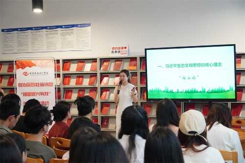 报告会上,中共北海市委党校党史党建教研室主任、讲师付雪原,自治区党委讲师团四级主任科员唐超男,南宁师范大学学生廖舒兰等,分别以《“生态留白”千秋计 不负青山不负人——习近平生态文明思想的“北海实践”》《谱写新时代生态文明新篇章》《共守国之大美 青春奋发有为》为主题,通过北海生态文明建设成果、浙江余村经济转化等亲历、亲闻的案例,从不同层面、不同角度高屋建瓴、深入浅出、以小见大地对习近平新时代中国特色社会主义思想进行细致的解读和阐释,为现场观众带来了一场精彩纷呈、形式多样的宣讲。