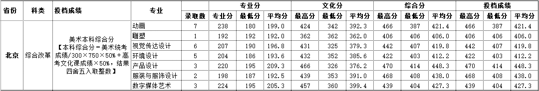 2020年北京 艺术类录取情况