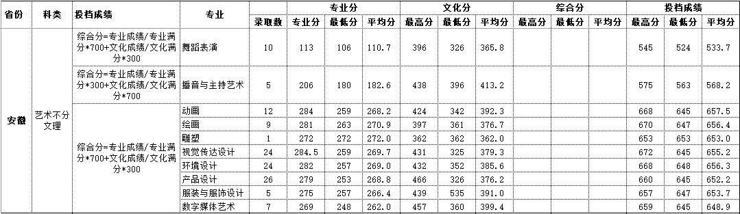 2020年安徽 艺术类录取情况