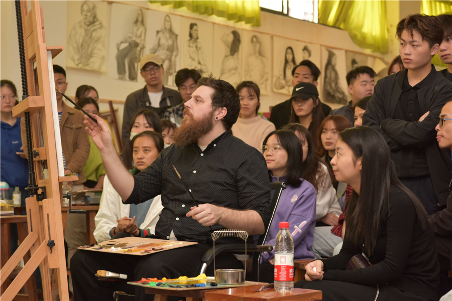 - 美国芬兰迪亚大学艺术学院教授为学生范画