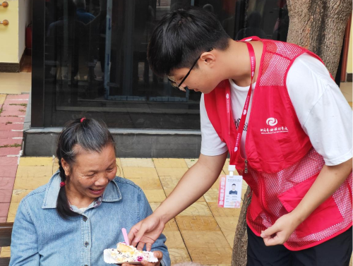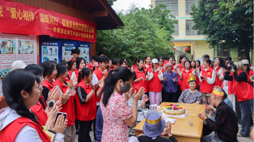 活动中,志愿者集体合唱,为老人送上生日祝福。在这美好的时光里,两代人的心紧紧相连,共同绘就了一幅和谐温馨的画面。
