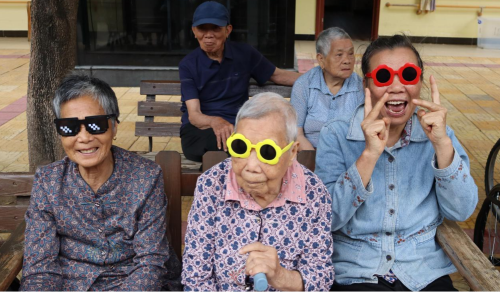 拍摄笑脸照环节,志愿者们贴心送上拍摄眼镜,让老人体验年轻人的拍照方式,用镜头定格下老人灿烂的笑容,后续将照片打印出来,送到老人手中,这些照片承载着大家之间深厚的情谊。