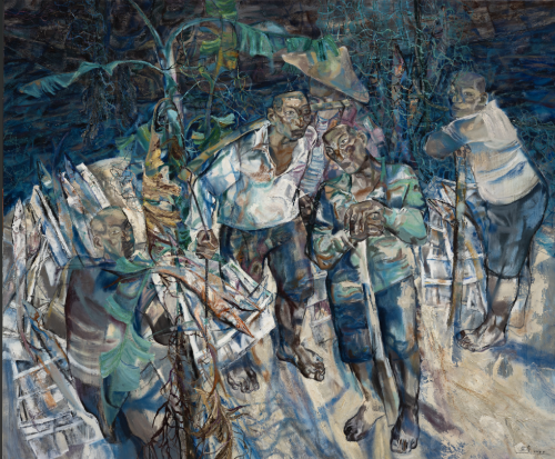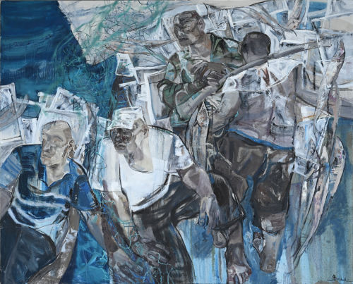 作品《北海有渔》的题材,选自广西北海侨港地区。在作品的呈现上,我希望画面中的形象不仅仅限于渔民这个身份,而是通过画面的语言、形式等内容,能让人感受到一丝欲语的“话”,来拓宽作品的情感表达。