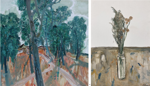 《扶疏若梦》(布面油画 80cm×80cm 2024年) 《花》 (布面油画60cm×40cm 2024年)