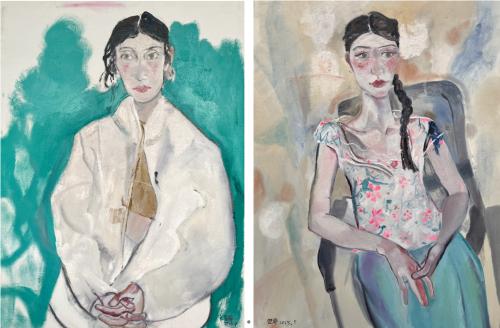 《失焦的瞳·女孩》(布面油画 80cm×60cm 2024年) 《失焦的瞳·舞者》(布面油画 80cm×60cm 2024年)
