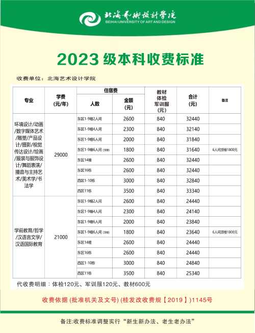 北海艺术设计学院南校区学生宿舍楼收费标准公示