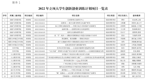 (三)请各二级学院对照《2022年立项大学生创新创业训练计划项目一览表》(附件1),通知并督促项目负责人及指导教师做好相关工作。
