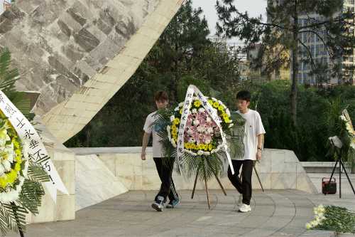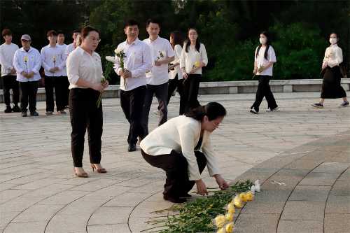 全体人员排队敬献鲜花