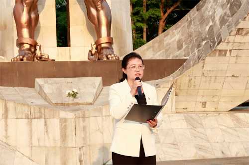 在庄严肃穆的烈士纪念碑前,全体代表人员通过致敬鞠躬、现场默哀、瞻仰烈士碑廊、敬献花篮和鲜花等方式表达对革命英烈的崇敬和追思。