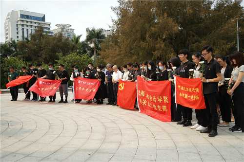 学校党委书记李高南讲话中指出,曾经的无数先烈用生命换来现在的幸福生活,他们的精神值得我们永远景仰和学习,我们要在习近平新时代中国特色社会主义思想指引下,认真贯彻落实党的十九届五中全会精神,为社会主义现代化建设不懈努力。烈士忠魂千秋在,革命精神代代传。今天的北海,正处于历史上最好的发展时期,今日在此纪念、缅怀先烈,我们将继承先烈遗志,时刻铭记历史使命,勇接社会主义现代化建设的接力棒,发扬革命传统和精神,团结奋斗,开拓创新,为社会主义现代化建设做出积极贡献。