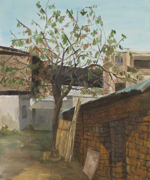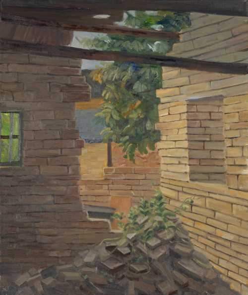陆兴月,绘画专业,《墙隅翠影》,50x60cm,布面油画