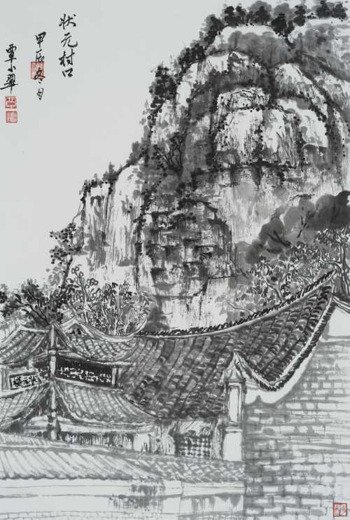 覃小翠,美术学专业,《状元村口》,47x70cm,中国画