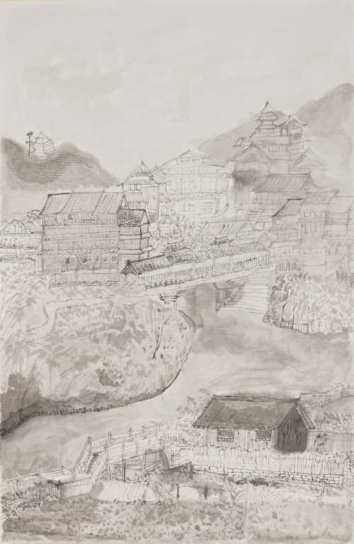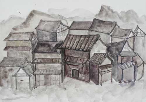 朱思逾,绘画专业,《侗寨》,65x45cm,中国画