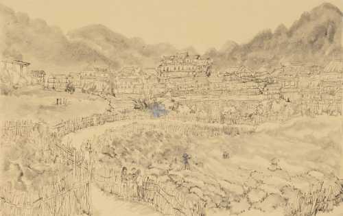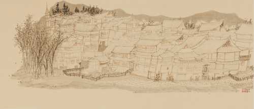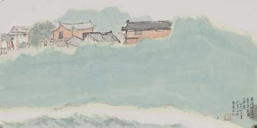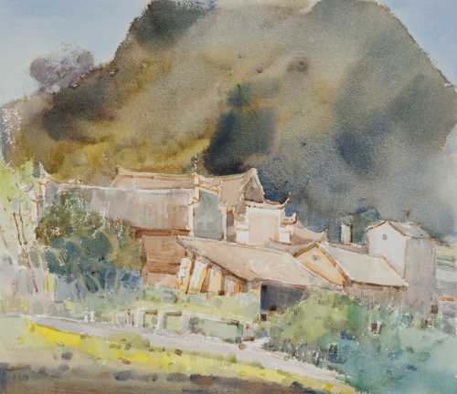 陈亚宗,《傍山而居》,30x50cm,纸本水彩