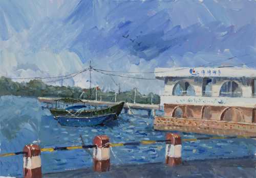吴诗敏,美术学专业,《梦幻码头》,4开,纸本水粉