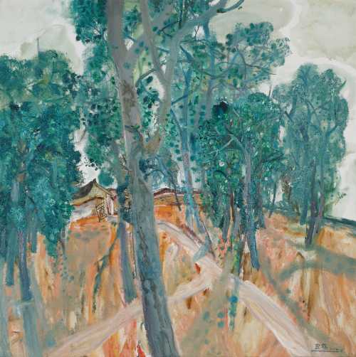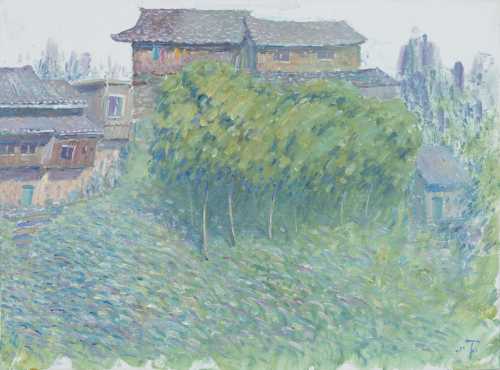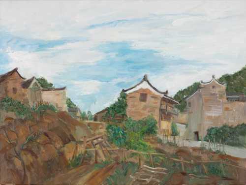 关懿恒,《侗寨印象系列一》,60x60cm,布面油画