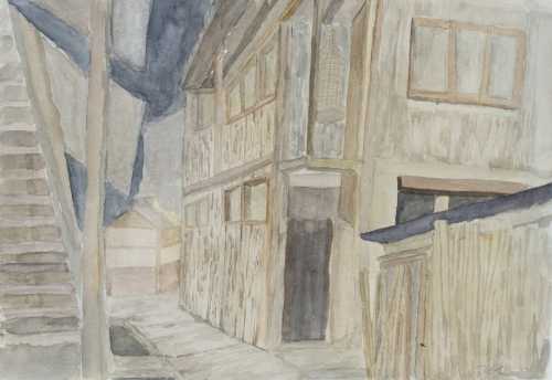 李鹏举,美术学专业,《侗寨小巷》,27x39cm,纸本水彩