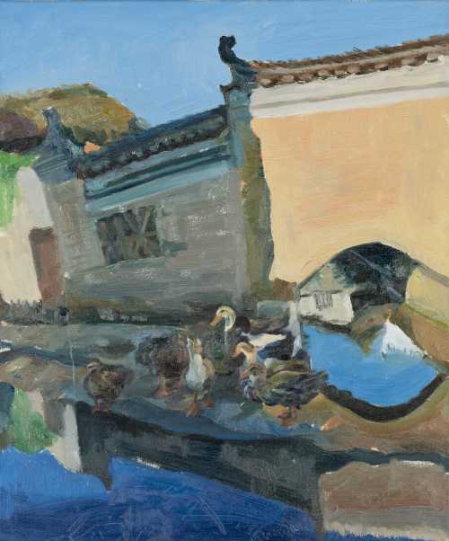 钟莹,绘画专业,《晨巷迟池》,50x60cm,布面油画