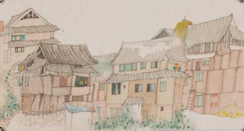 刘佳敏,美术学专业,《侗寨风情》,27x39cm,纸本水彩