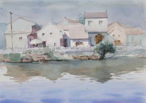 段凝,《状元村印象》,30x50cm,纸本水彩