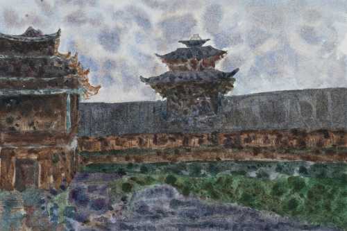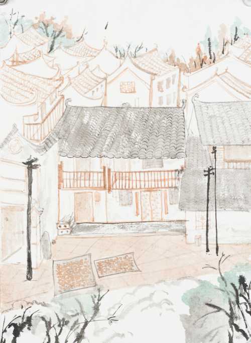 韦剑仕,《状元楼一角》,32.3x45cm,中国画