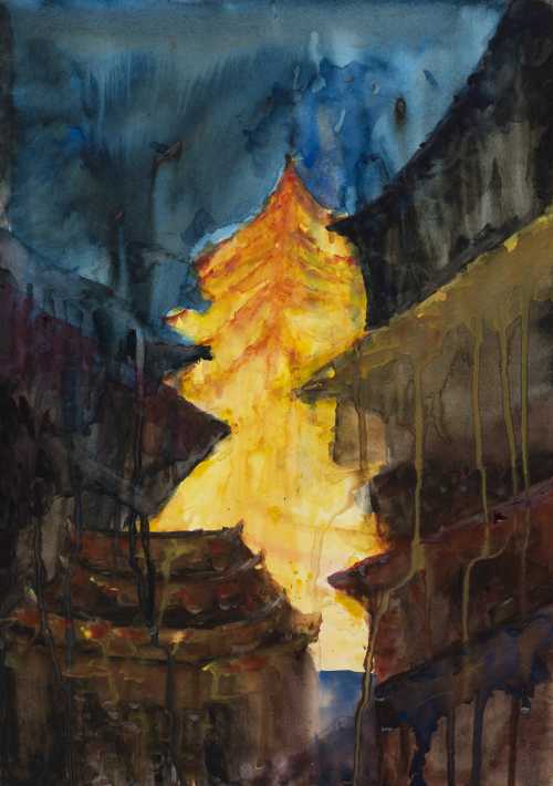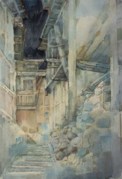 刘孟典,绘画专业,《记忆·故乡》,4开,纸本水彩