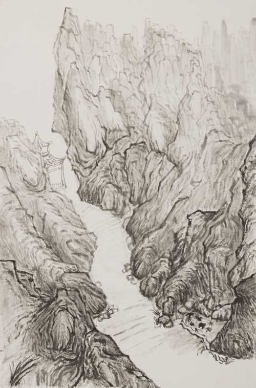 吴佳秩,绘画专业,《神剑石林·登顶》,65x45cm,中国画