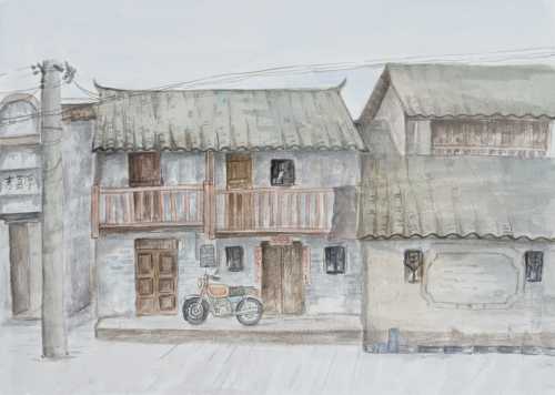 郭连,美术学专业,《街边屋舍》,39x54cm,纸本水彩