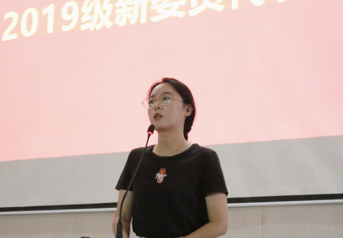 大会第二项,环境艺术学院分团委2019级新成员代表关翰林发表自己对将来的工作的期待。他用泰戈尔的《飞鸟集》:“天空没有留下翅膀的痕迹,但我已飞过。”一句表达了自己对分团委集体以及今后工作的尊敬和热爱。