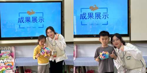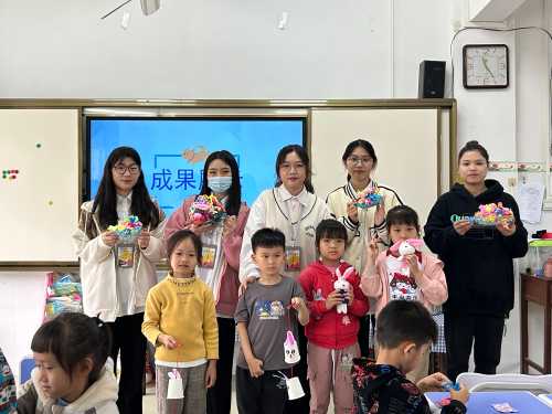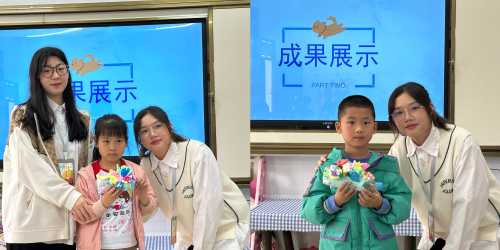 在指导小朋友进行手工创作的过程中,学前教育专业的学生展现出了自己的专业素养和专业能力,耐心引导,细致指导,让每一个小朋友都做出自己喜欢的手工作品。
