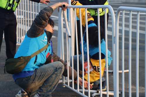 激情四溢的呐喊,不断挥舞的旗帜,这是来自路线加油组的鼓励。一个微笑一次击掌,一句加油跑起来,都让赛场充满了温暖和关怀,在道路上形成一道靓丽的风景线。