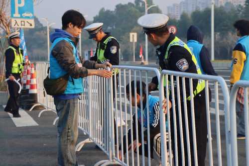 志愿者协助交警维持现场交通