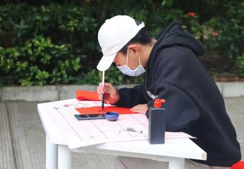 小书法家们神情专注,一幅幅行书、隶书、楷书春联各具特色,吸引了许多老师和同学前来欣赏,不少春联、“福”字墨迹未干就已被收入囊中,现场气氛热烈。