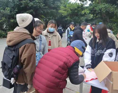 同学们耐心排队等待定制的对联,志愿者们按照同学们要求认真书写春联,工作人员认真核实同学登记的信息之后,将春联赠予本人。
