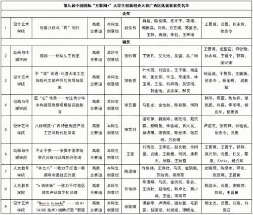 近日,广西壮族自治区教育厅发文公布了第九届中国国际“互联网+”大学生创新创业大赛“数广集团杯”广西赛区选拔赛获奖名单,我校斩获奖项共17项,其中,项目《惊喜八桂与“坭”同行》斩获自治区级金奖,其它晋级区赛的16个项目荣获自治区级铜奖。