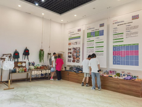 据悉,本次展销会主要分为三部分,其中第一部分是对我校“3333”即“三平台、三类课、三渠道、三市场”创新创业教育体系的介绍,而本次展销会正是“三市场”中的校内市场;第二部分是对我校创业启蒙课程的简介和课程成果的展示。该课程以“我为乡村弟弟妹妹做文具”为主题,旨在引导低年级学生在进行社会调研的基础上结合专业背景为乡村弟弟妹妹手工制作一款文具,并将最终设计成品赠予乡村学生;第三部分是对我校专创融合教学过程与教学成果的具体展示。这部分所展售的商品既包括在校生们围绕广西特色、海洋文化、丝绸之路、北海名胜等元素进行创作的优秀作品,还涵盖了我校毕业生们在被市场选择和检验后的成熟创业产品。
