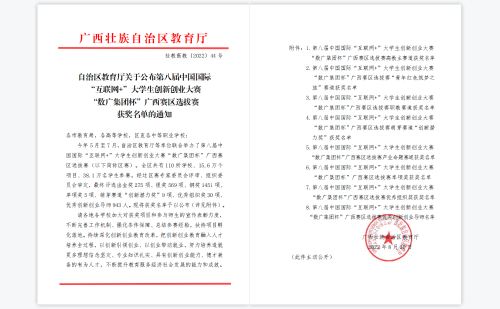 近日,广西壮族自治区教育厅发文公布了第八届中国国际“互联网+”大学生创新创业大赛“数广集团杯”广西赛区选拔赛获奖名单,我校共斩获金奖1项、银奖4项、铜奖17项。