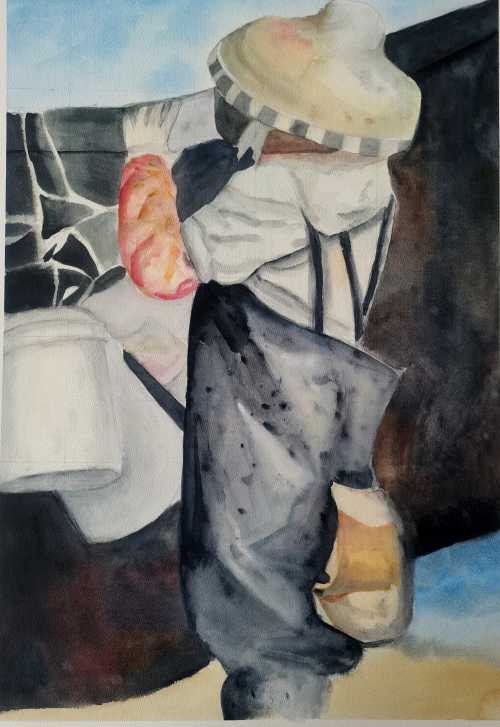 何思缘《渔民》(之三) 48cm×48cm 2023年 纸本水彩