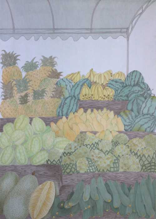 张馨萍《青果市集》115×160cm 2023年 纸本