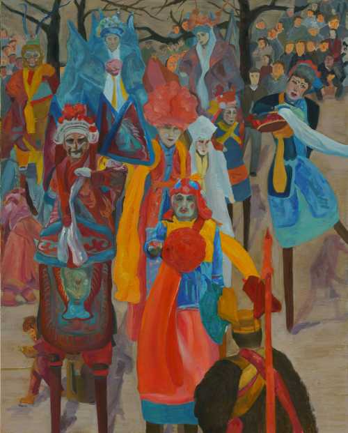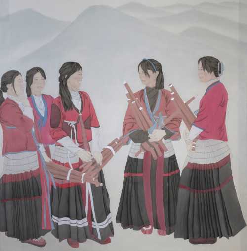 叶辰中《傣乡欢庆》182×115cm 2023年 纸本