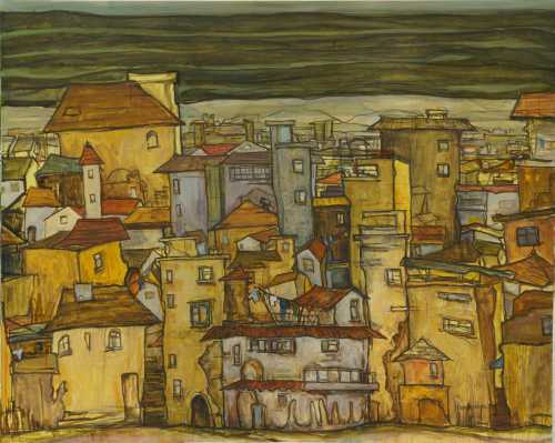 韦宇欢《小镇》51cm×75cm 2023年 纸本水彩