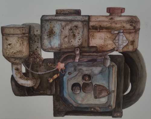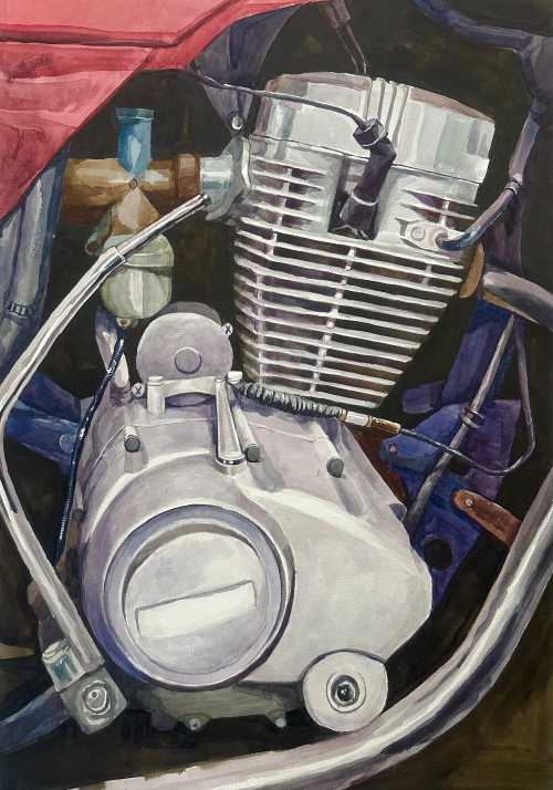 李贝贝 《摩托车的心脏》 75cm×52 cm 2023年 纸本水彩