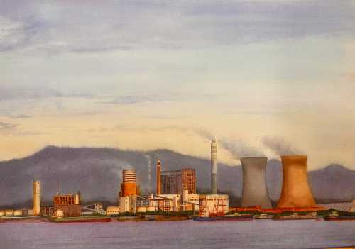 潘巧姝《核电站的英姿》65cm×71 cm 2023年 纸本水彩