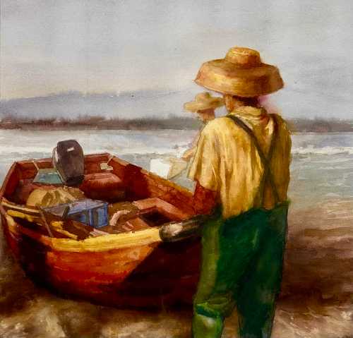 徐盼《船夫》53cm×76cm 2023年 纸本水彩
