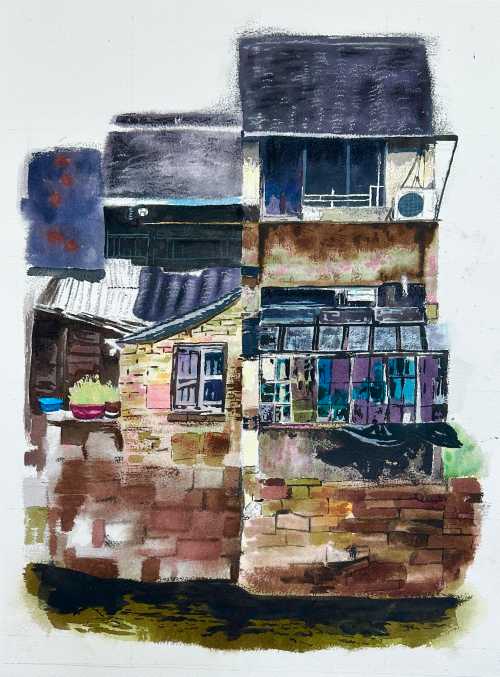 李庆庆 《外婆的故居》 108x76cm 指导教师:刘广滨、段凝