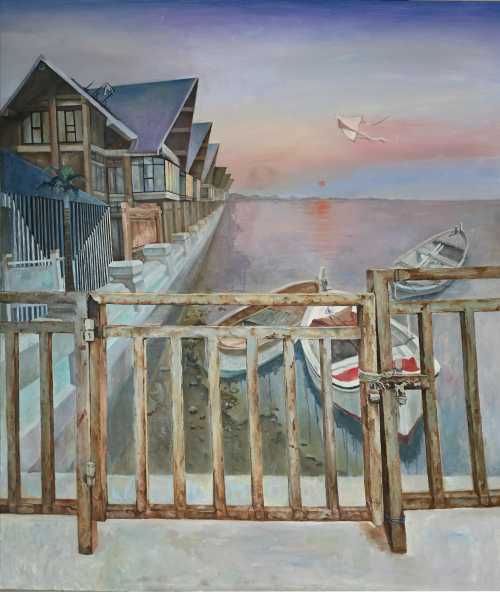 绘画2105班 刘文庆 《渔港记忆》 90×100cm 指导教师:袁志伟