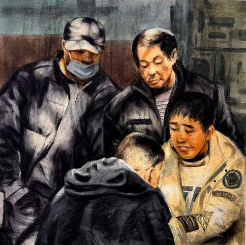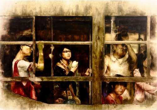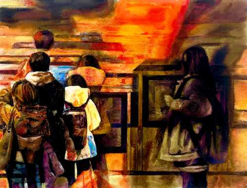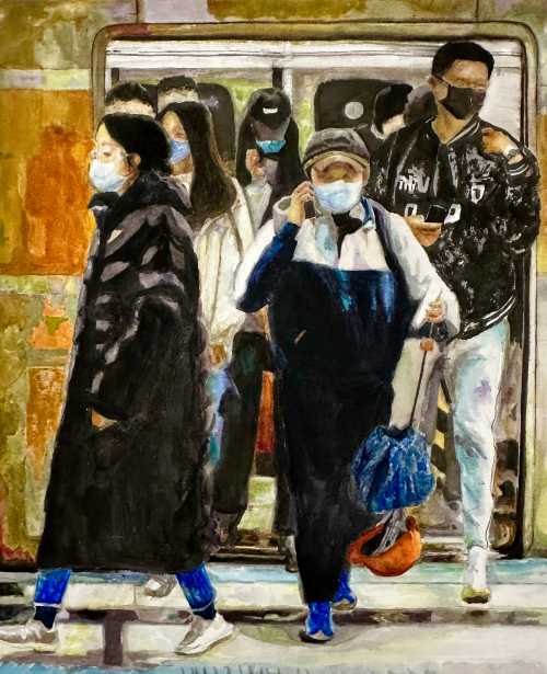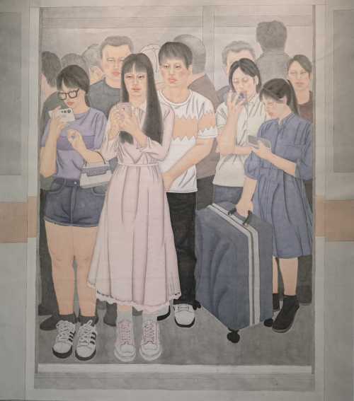 周娜娜 《地铁上》 53x76cm 指导教师:刘广滨、陈亚宗