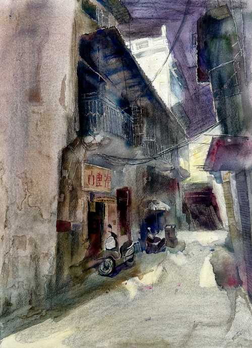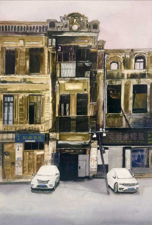 三等奖 周叶 《老街》 54x78cm 指导教师:刘广滨、陈亚宗