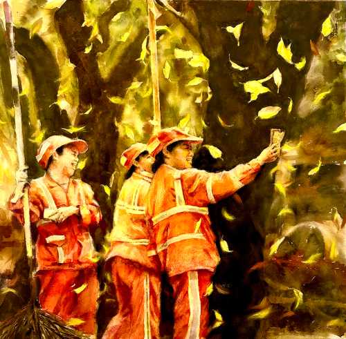 瞿杨虹 《辛勤的背影》 78×109cm 指导教师:刘广滨、段凝