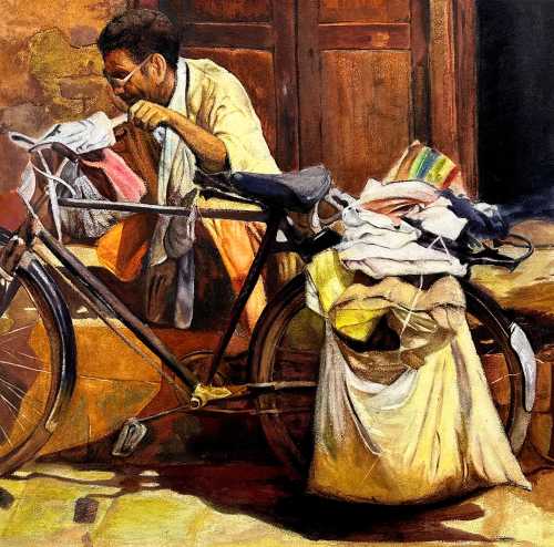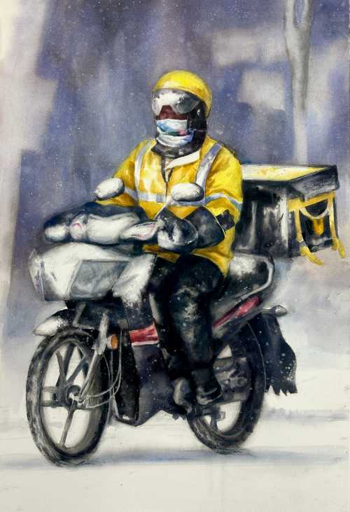 陈贾菲 《外卖小哥》 78×78cm 指导教师:刘广滨、陈亚宗